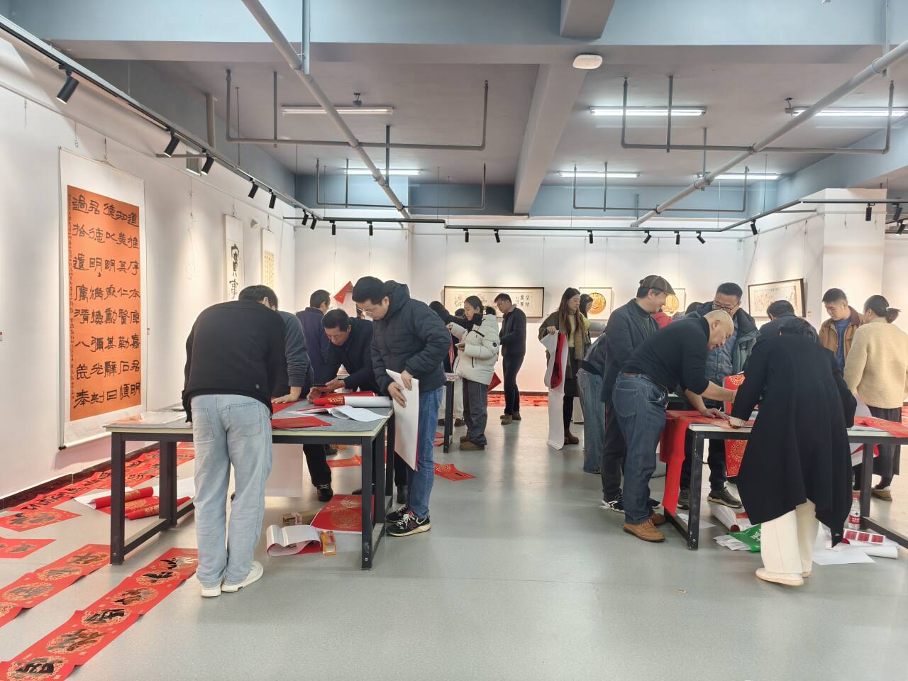 为深入学习宣传贯彻党的二十届四中全会精神,落实习近平总书记在文化传承发展座谈会上的重要讲话精神,弘扬中华优秀传统文化,丰富教职工精神文化生活,营造欢乐祥和的新春氛围,1月15日上午,校工会在学校美术馆(揽胜楼1楼)成功举办了第五届“书画名师送春联”活动。